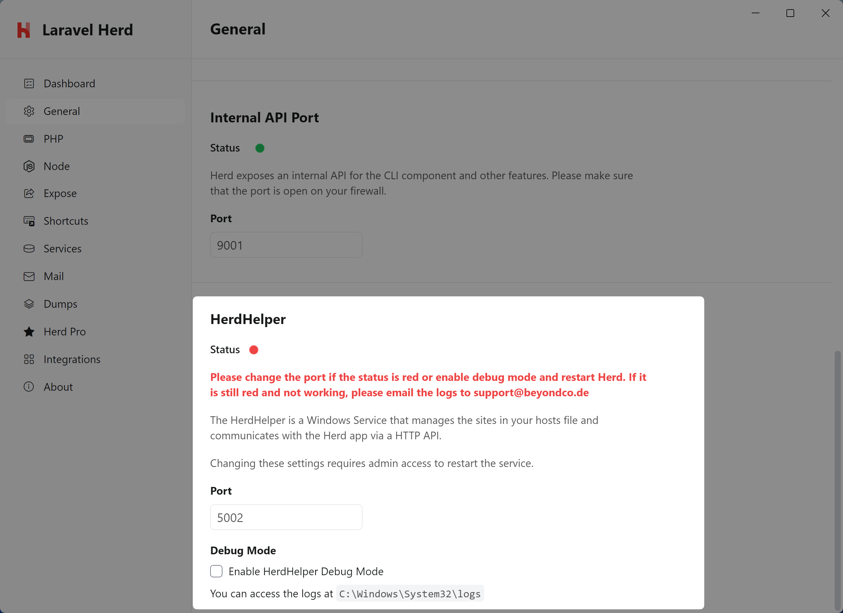 There are many reasons why Herd can’t write to your hosts file, sometimes it’s locked by anti virus software or is simply read-only. The HerdHelper tries to mitigate these situations automatically but can also write logs to track down the issue, so if the helper works and the status is green, please check these logs.